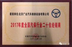北京廣達蟬聯(lián)“2017年度全國汽保行業(yè)二十佳經(jīng)銷